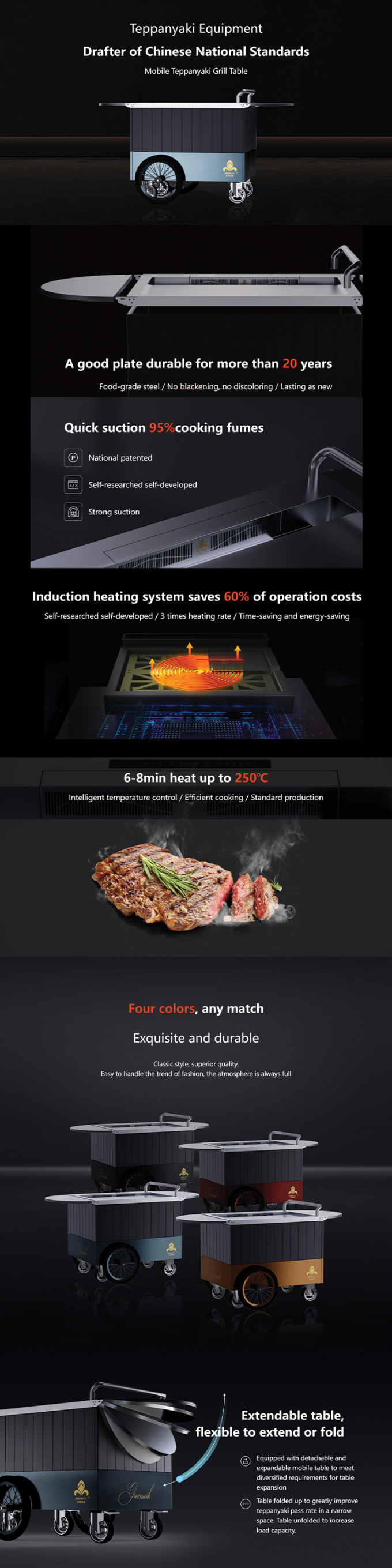 سطح طاولة قابل للتوسيع والتمييز: تغيير مساحة الطهي على الفور من صغيرة إلى كبيرة، مثالية للمطبخ المنزلي، شاحنات الطعام، أو الأحداث في الهواء الطلق.
